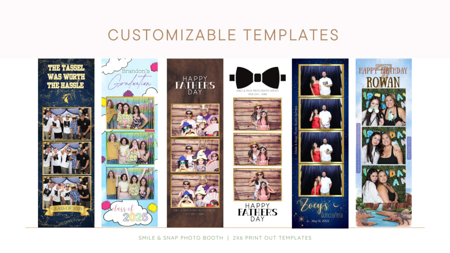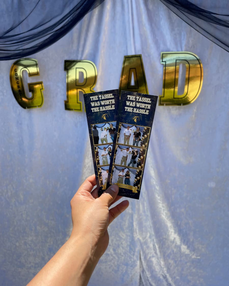 Get the full photo booth experience with 2x6 photo strips printed on the spot!